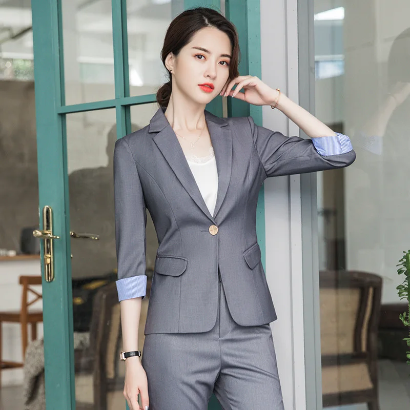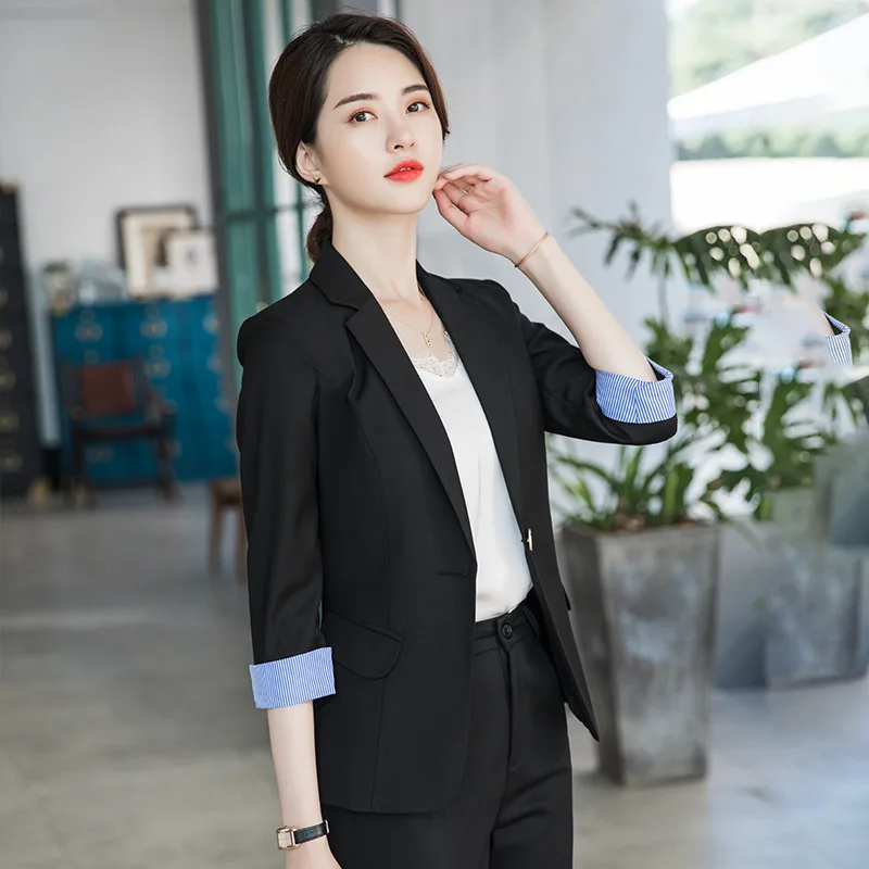 Images of 2020 Business Pant Suit Uniform Female Elegant Formal Office Lady Jacket and Long Black Blazer Set Women OL 2 Two Pieces Suits :