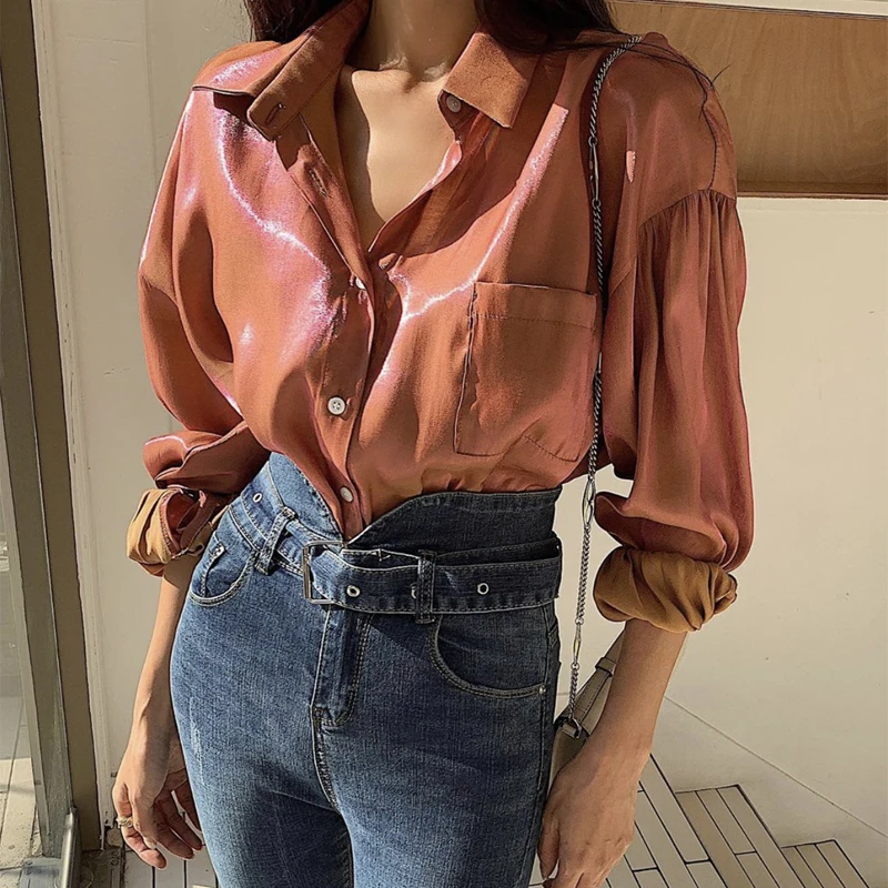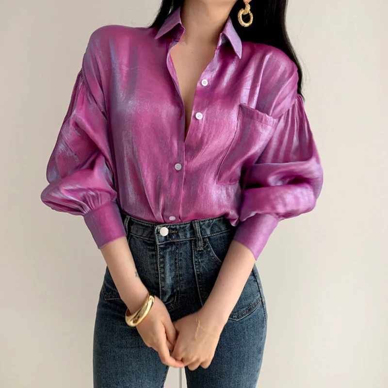 Sale GOPLUS Spring Women's Blouse Shirt Casual Turn-down Collar Long Sleeve Pockets Blusas Womens Tops and Blouses Ropa Mujer