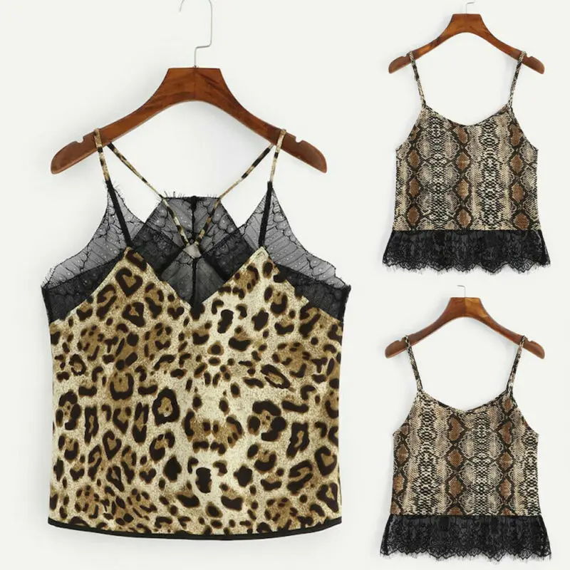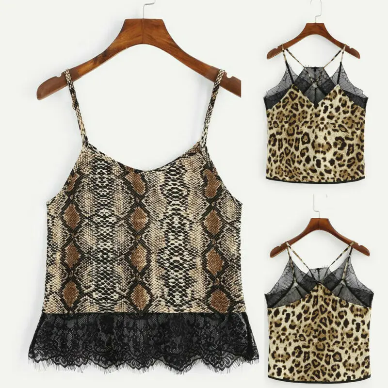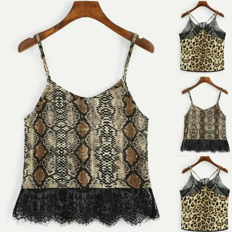 Images of Fashion Women Snakeskin Leopard Print Casual Sexy Lady Summer Sleeveless Tank Top Vest Blouse Off-Shoulder Crop Tops Shirt S-XL :
