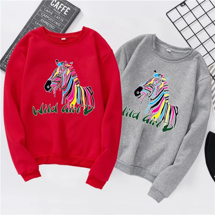 Images of 2020 Spring animal Wild Horse shirt women sweatshirt Autumn hoodie Freedom Streetwear Long Sleeve couple shirt Family Clothing :