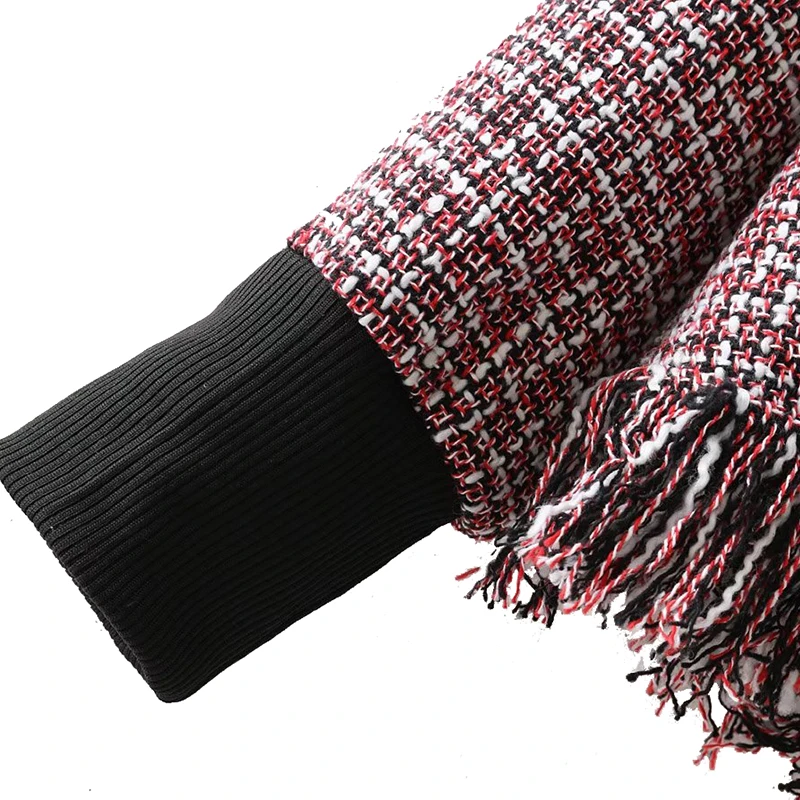 Best Offer Casual Turtleneck Sweatshirts Women Fashion Red Woven Sweatshirt Ladies Elegant Tassel Pullover Female Long Sleeve Tops