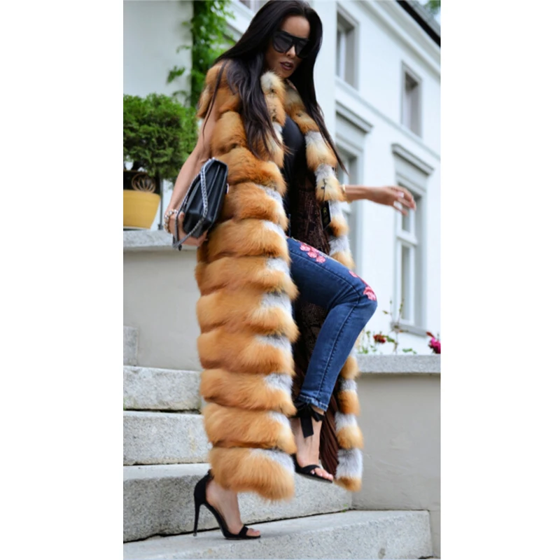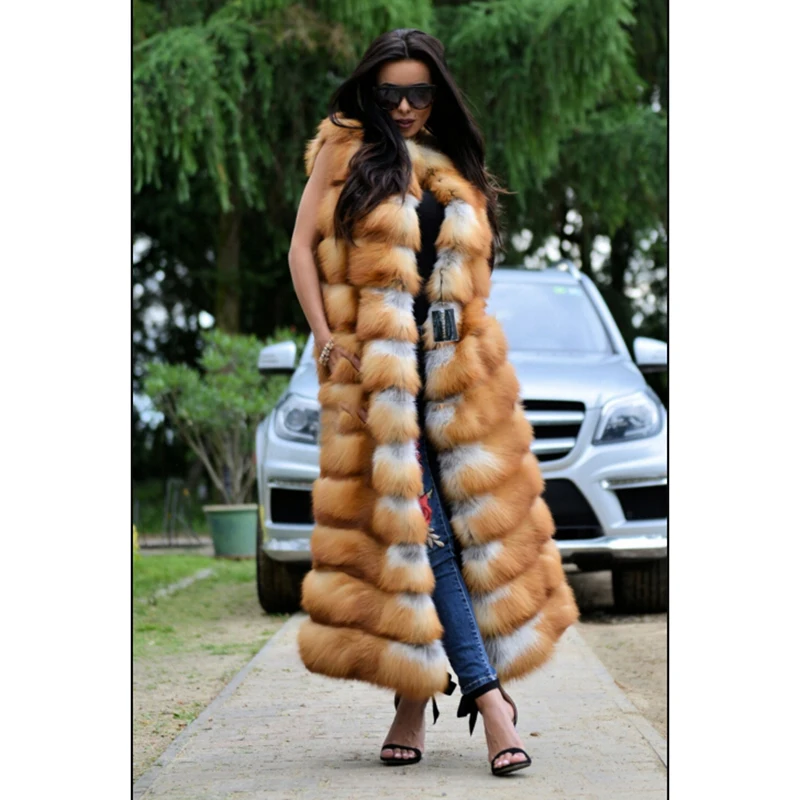 Images of BFFUR Capped Woman Winter 2018 Winter Palace Real Natural Red Fox Fur Vest X-Long Outerwear Womens Warm Ladies Tops Plus Size :