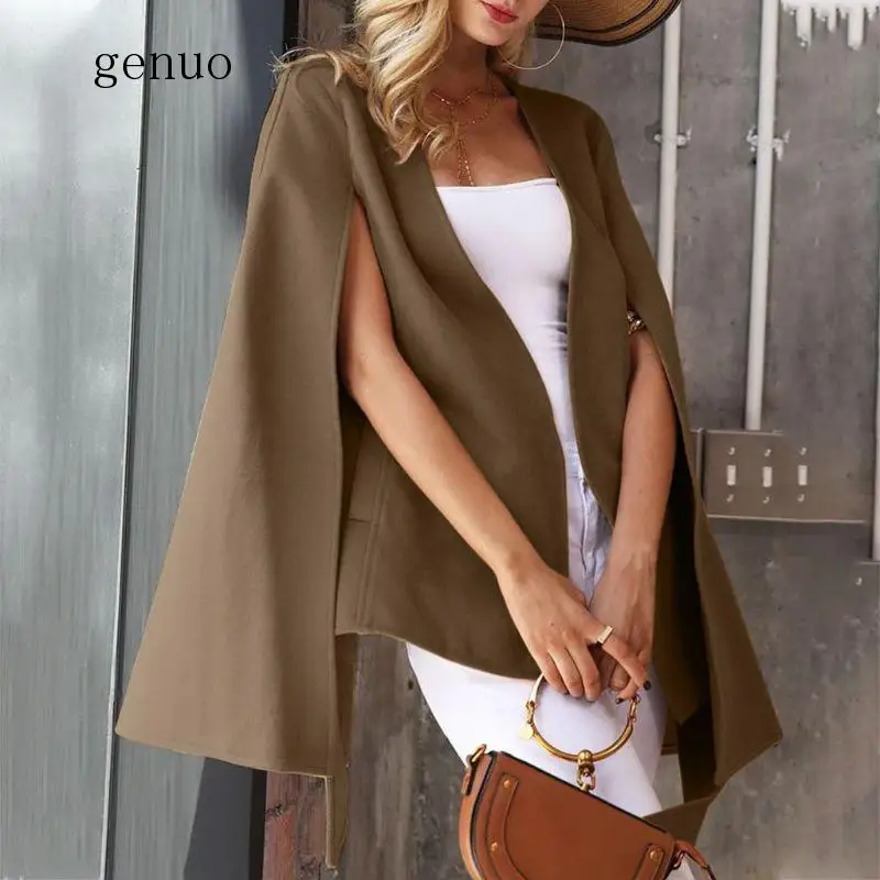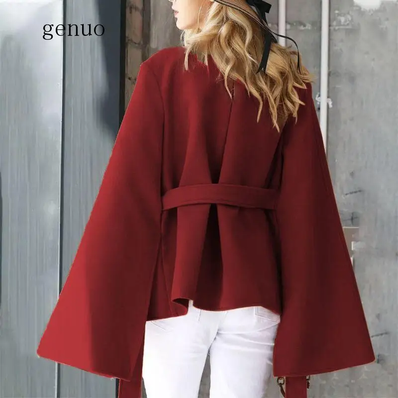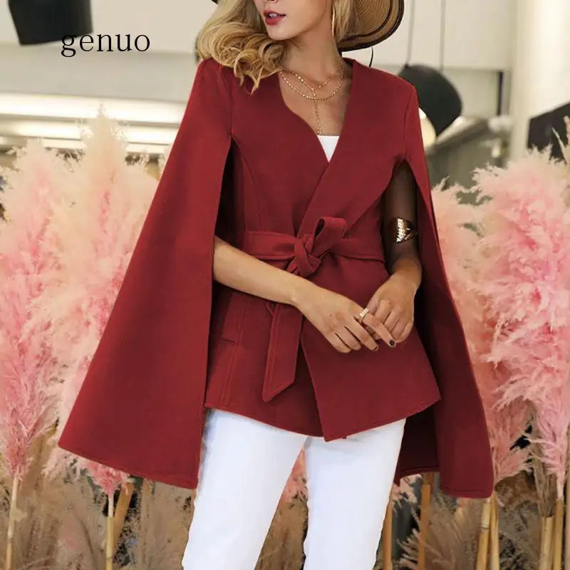 Promo Womens Winter Vintage Cloak Batwing Sleeve Poncho Cape Belted Waist Trench Coat