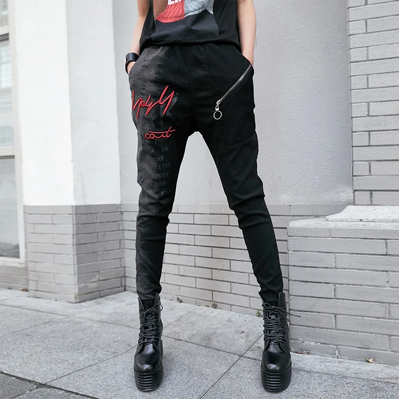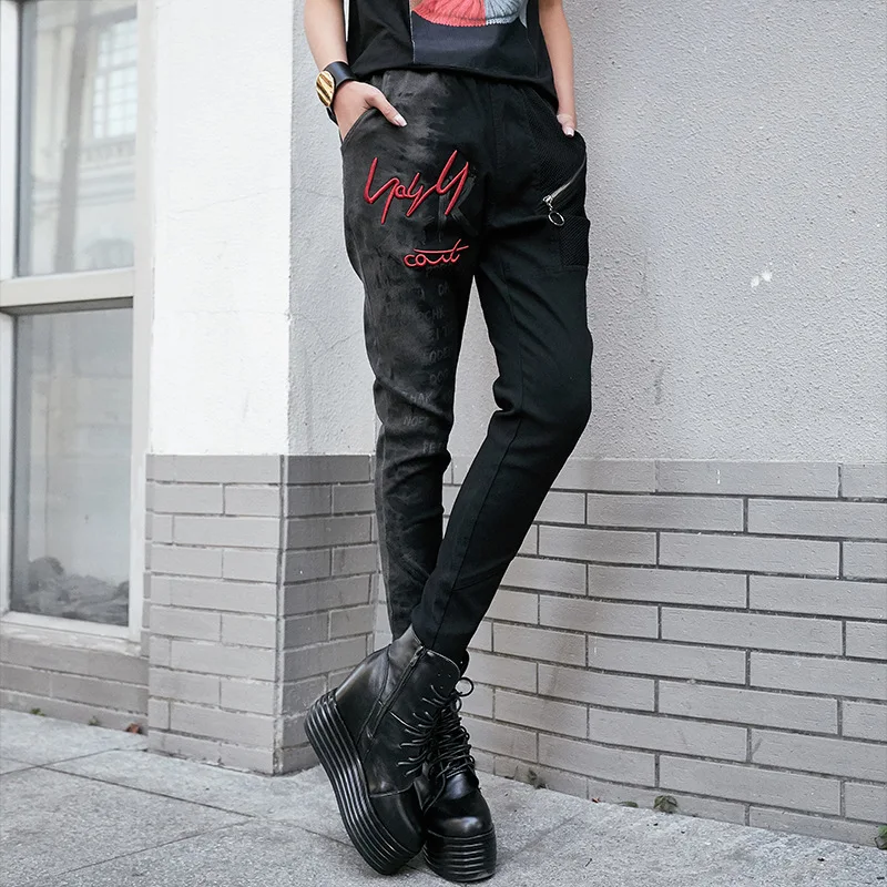 Images of Autumn New Women's Denim Cotton Pants Transparent Color Embroidery Letter Printed jeans For Women With Zipper And Pocket Z3 :