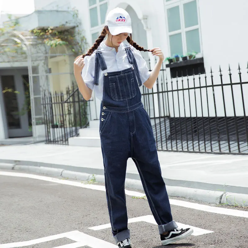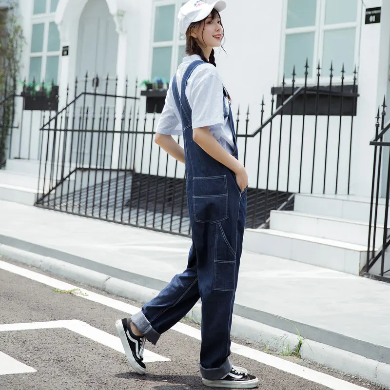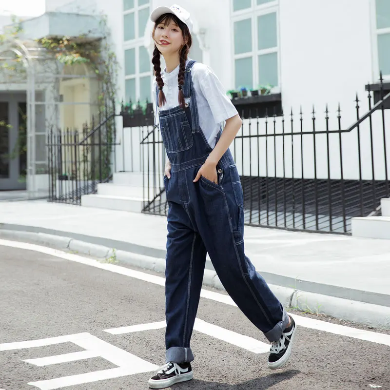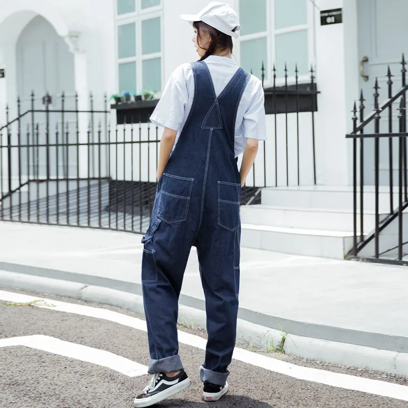 Images of Fashion oversized denim bib pants loose denim spaghetti strap pants straight thin plus size available :