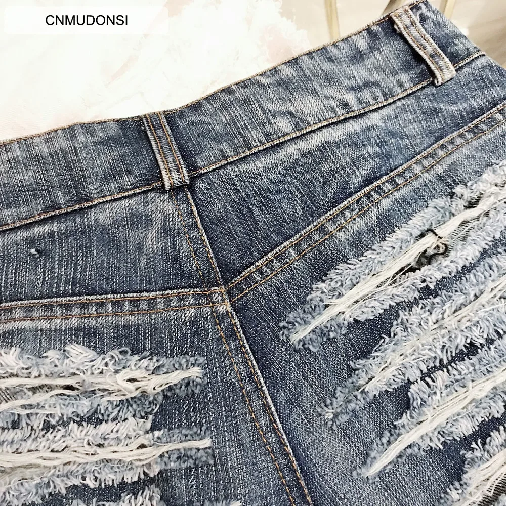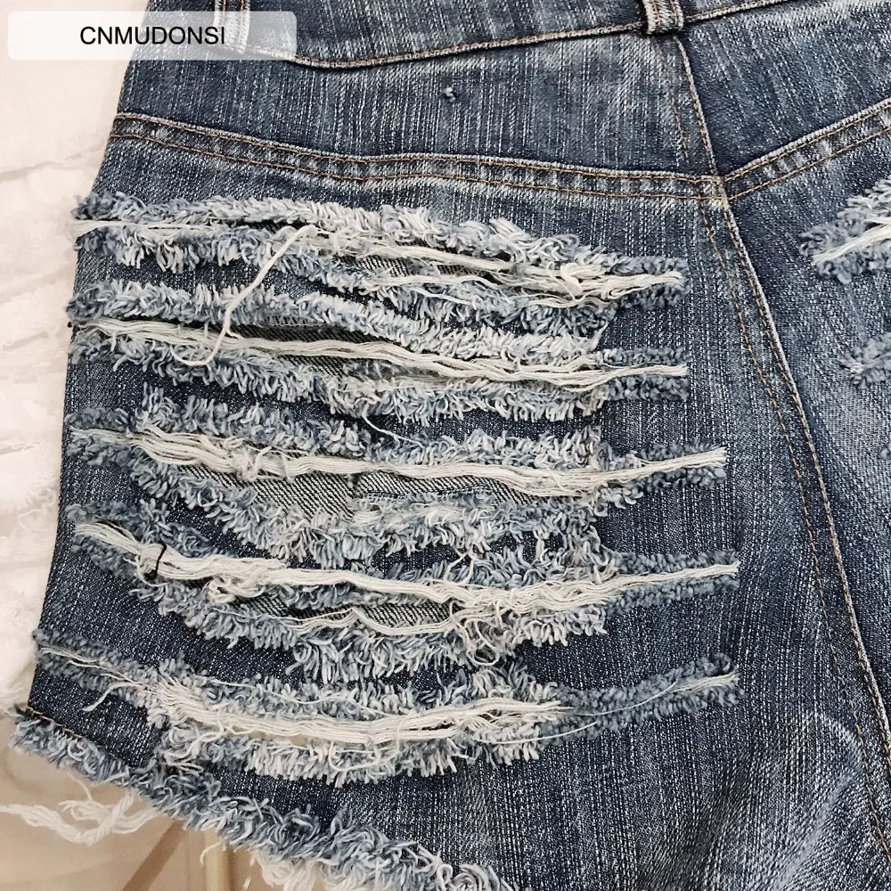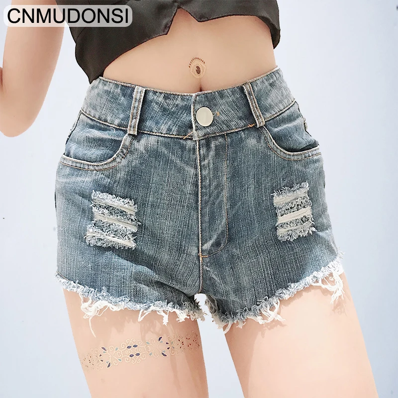 Images of CNMUDONSI 2019 New Woman Shorts Denim Summer Short Feminino Plus Size High Waist Irregular Denim Casual Jeans Hole Denim Shorts :