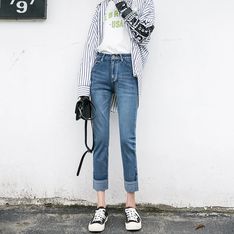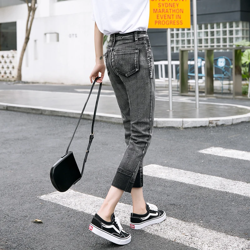 Best Offer Women's jeans for spring and autumn Girl cropped pants mom pants Blue ankle pants stretch Retro Style Cotton Casual leggings jea