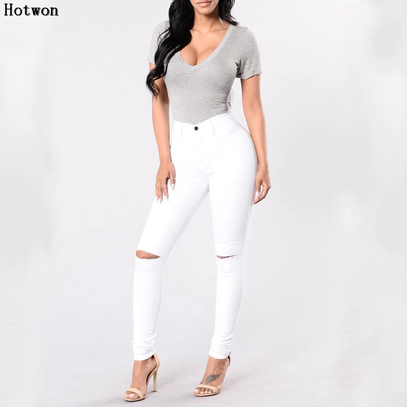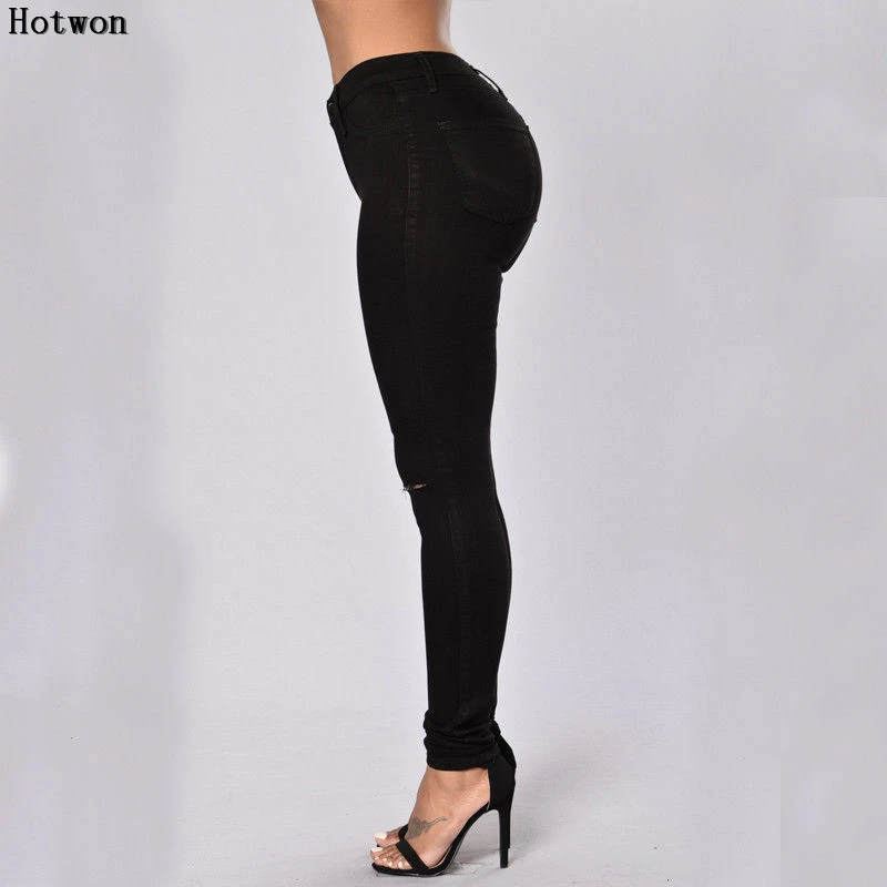 New 2017 New Fashion Autumn Style Women Jeans ripped Holes Black White Pants Jeans Slim vintage boyfriend jeans for women