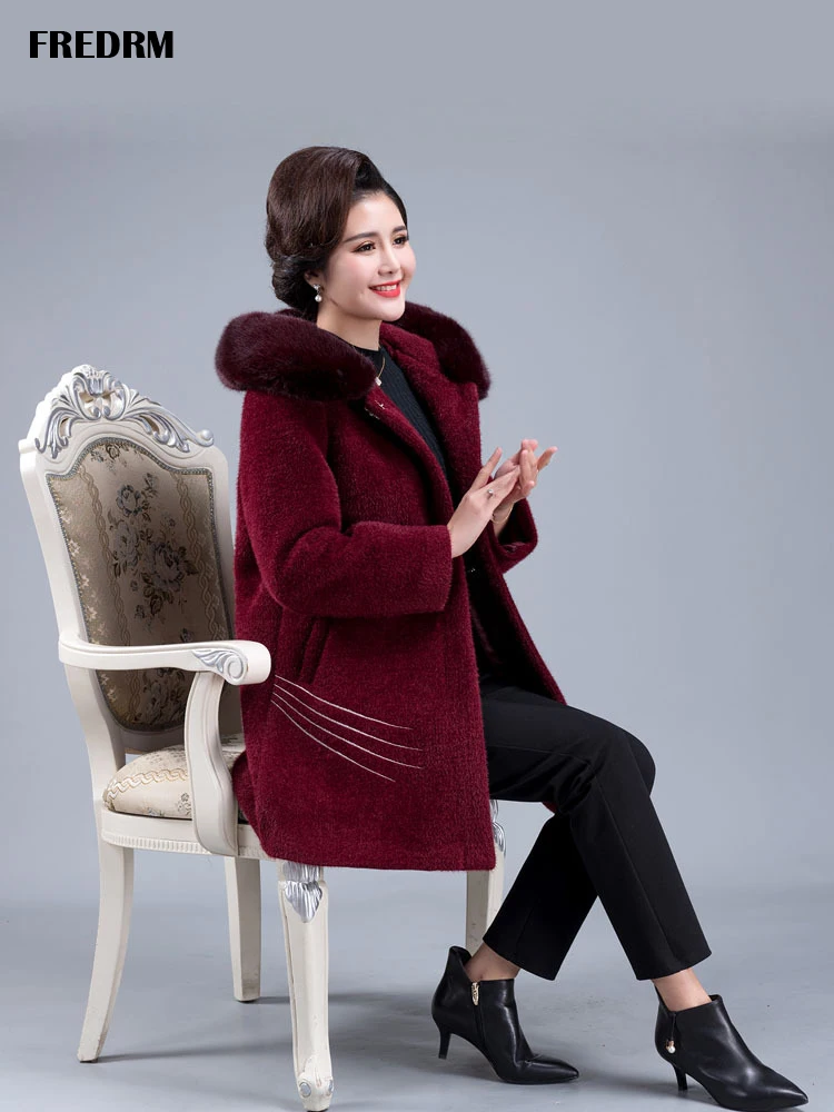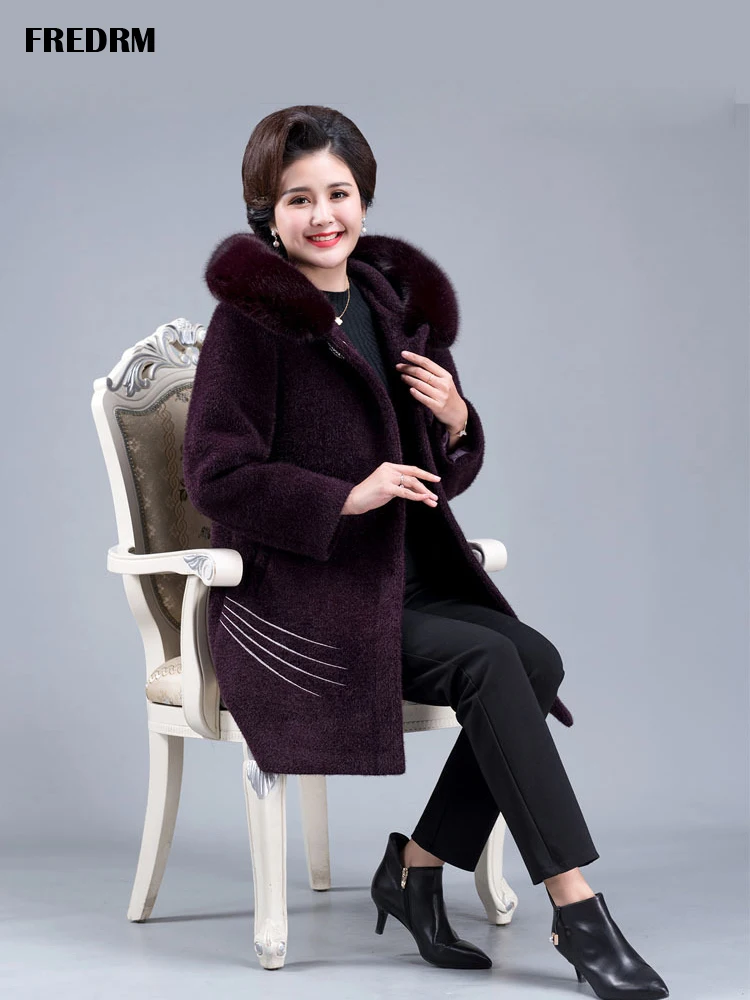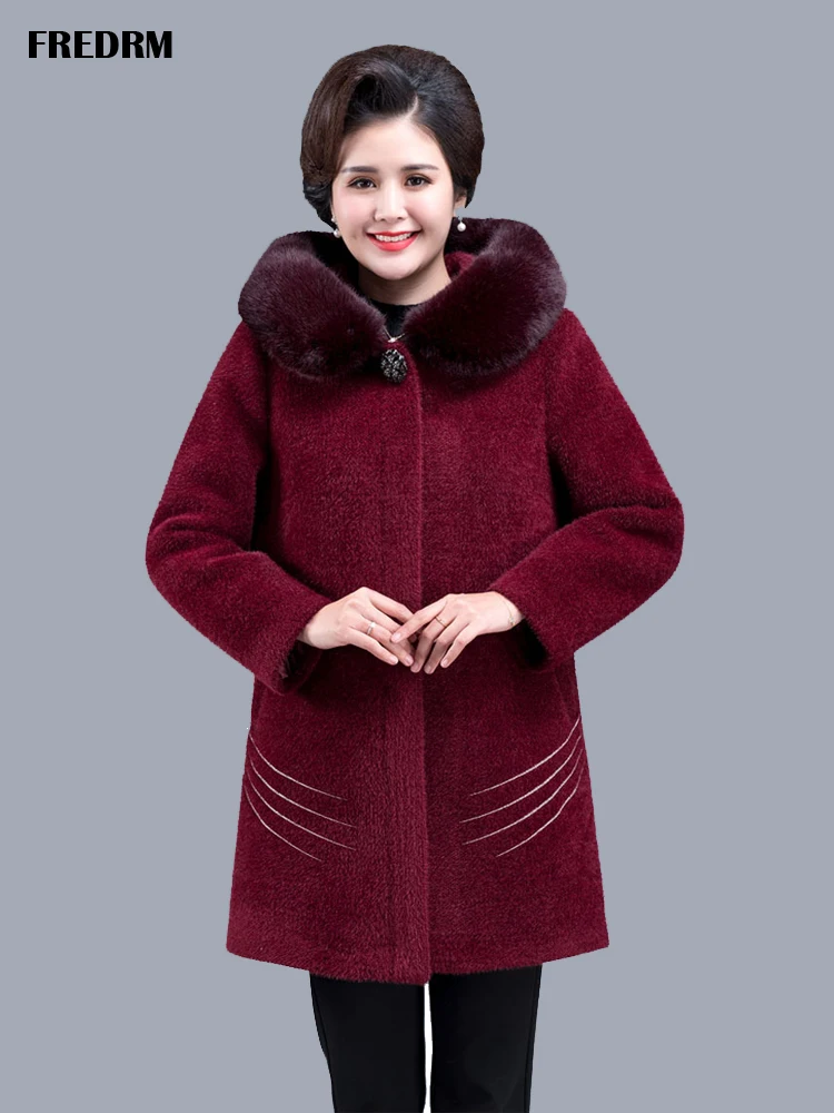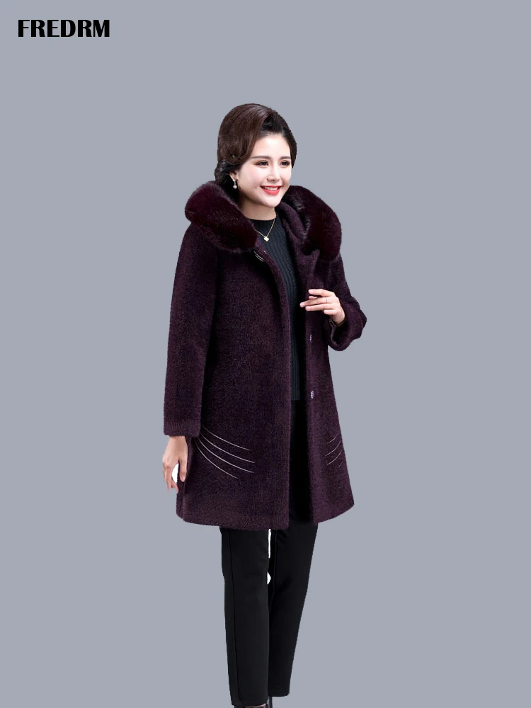 New FREDRM Winter Coats Women 2019 New Office Lady Faux Fur Fleece Thick Woolen Overcoat Fake Mink Cashmere Female Plus Size Euro 52