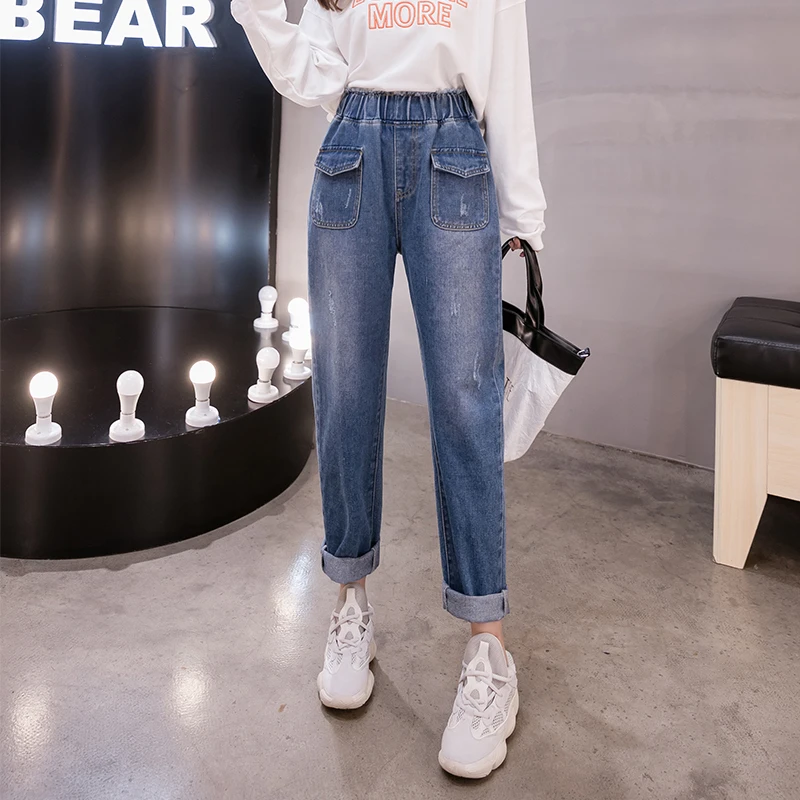 New Plus Size S-5XL Jeans Women 2020 New Denim Pants Fashion High Waist Jeans Female Pants Harem Pants Trousers Blue