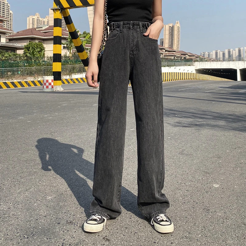 Sale Fashion Jeans Woman Waist Slim Mom Jeans Woman Plus Size Cylinder High Waist Wide Leg Loose Jeans Mop Design Jeans blue Retro