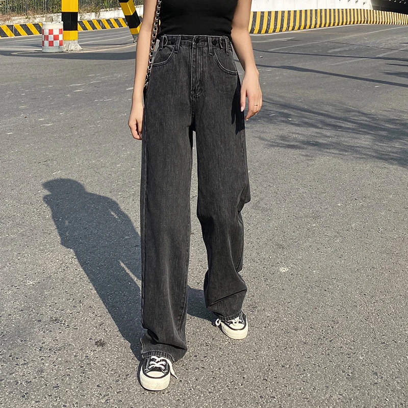 Get this Fashion Jeans Woman Waist Slim Mom Jeans Woman Plus Size Cylinder High Waist Wide Leg Loose Jeans Mop Design Jeans blue Retro with limited time discount by pressing the button below