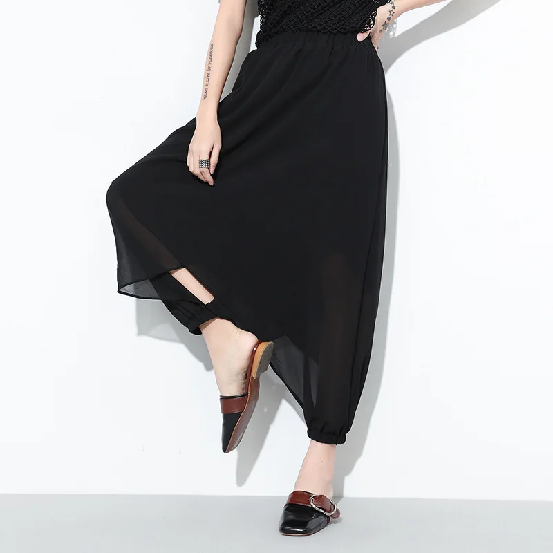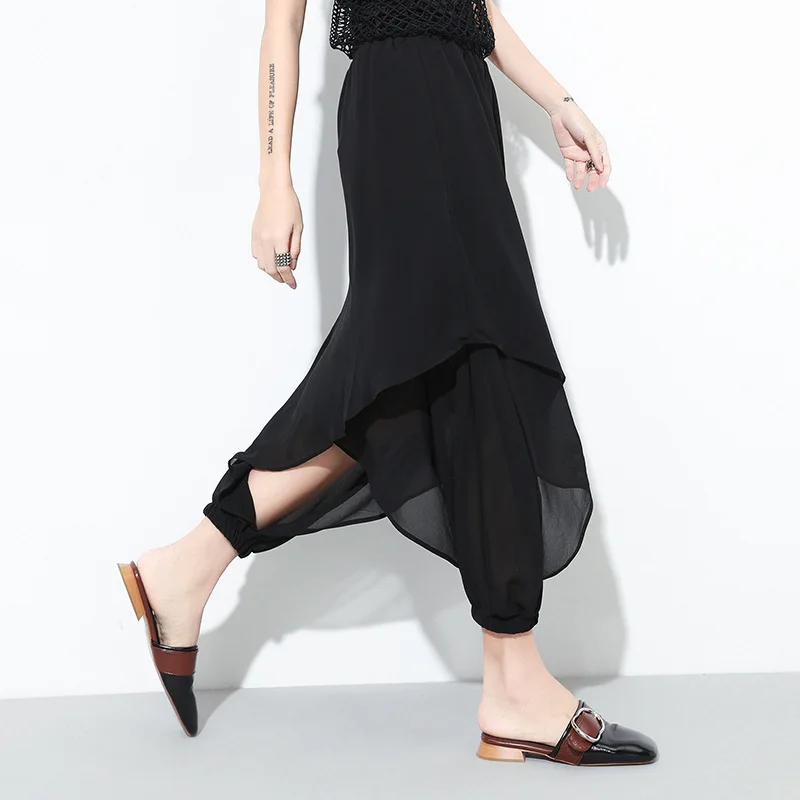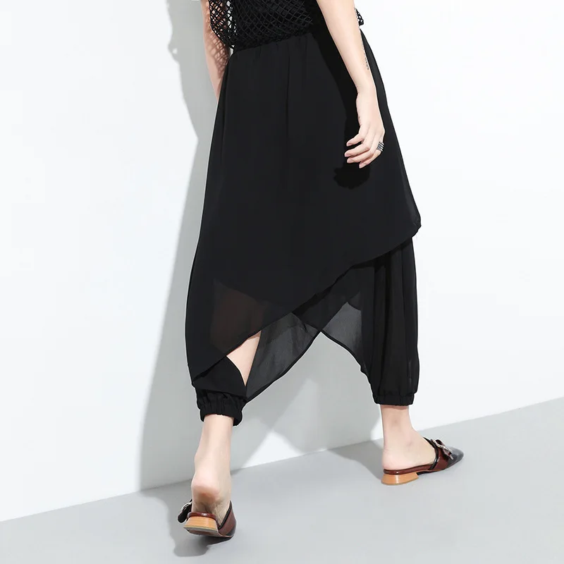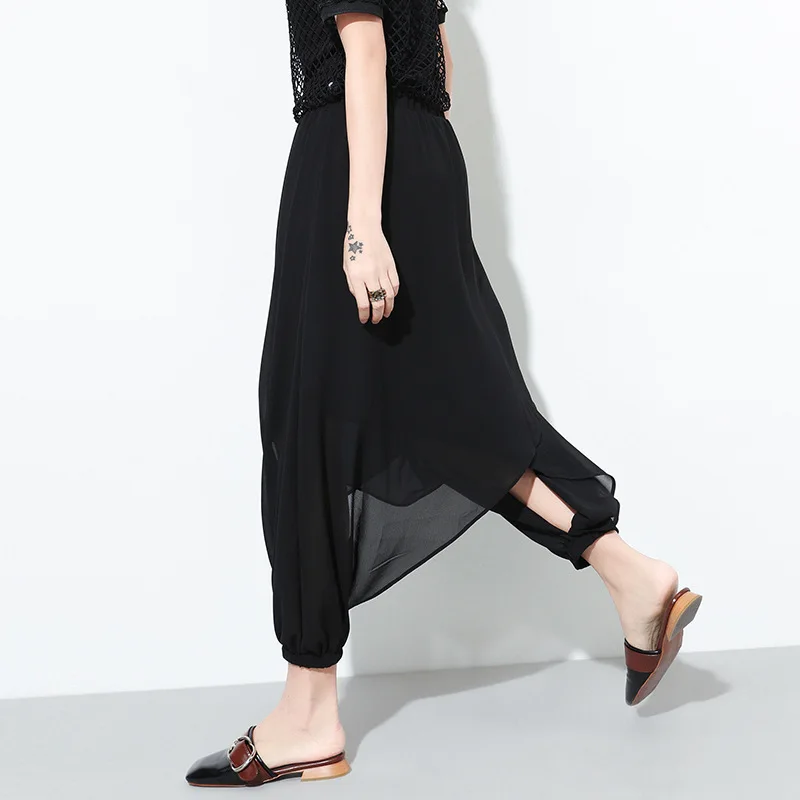 Sale Loose Irregular Elastic Waist Ankle -length pants for women hip hop fashion chiffon trousers female